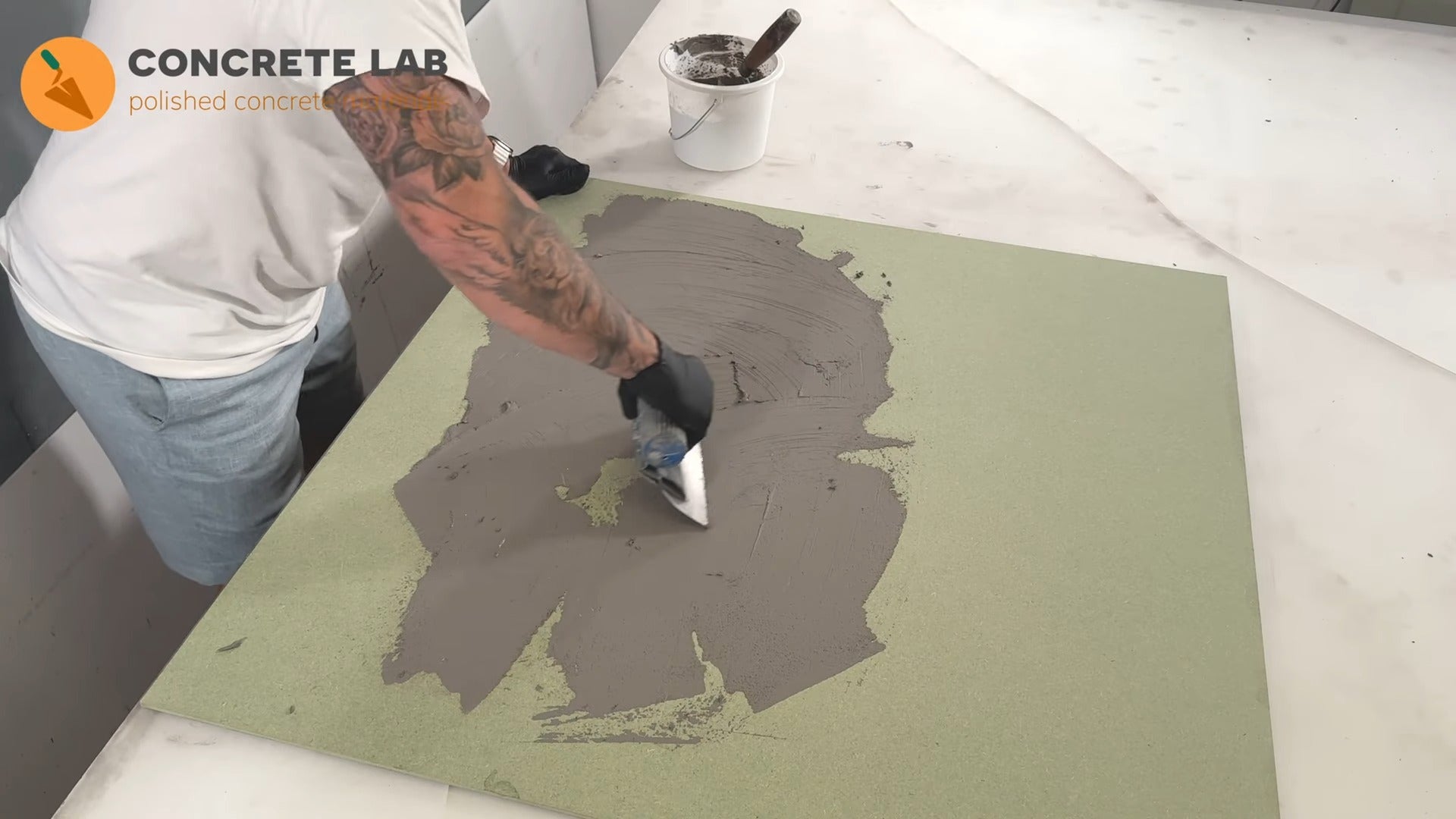 Microcement is a VERY thin layer of concrete which can be applied to many different surfaces. It is typically only a few millimetres thick and has a very smooth finish, giving the appearance of polished concrete to whatever it is applied to.
