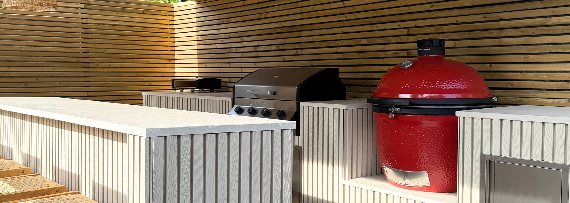 For outdoor worktops we recommend using cement board as the base. Its not expensive, cuts easily and is very compatible with microcement.