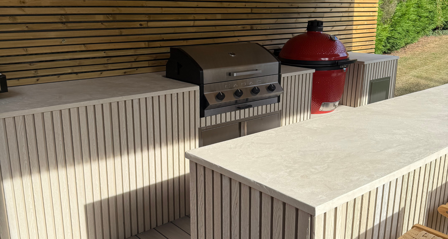 Yes — when sealed and protected from standing water, Microcement performs beautifully on exterior worktops, walls, planters etc.